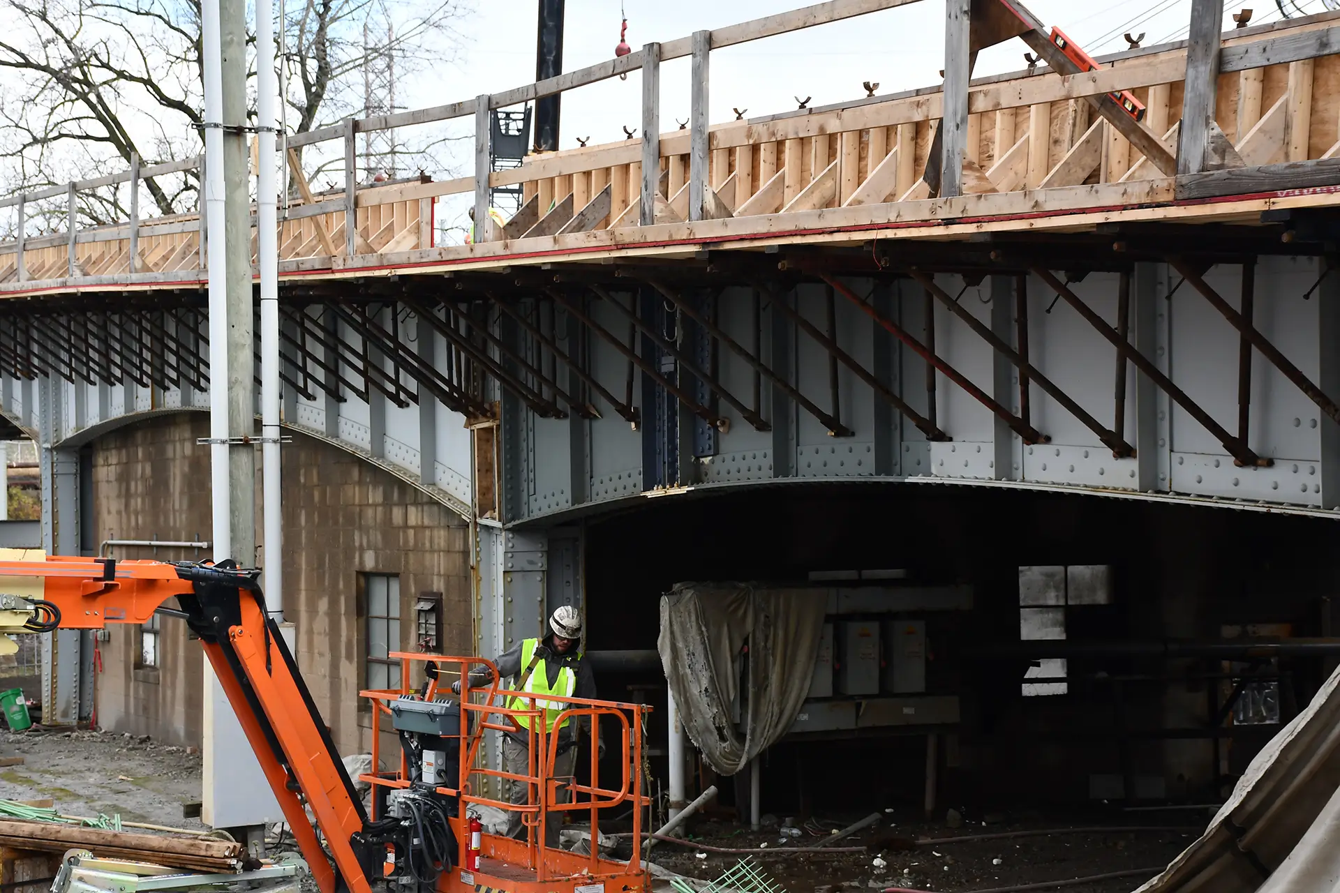 Pier work was finally completed a few months ago and the steel structure was then put into place, which for the most part freed Brayman to work on the bridge without interference with the railroad tracks below it.