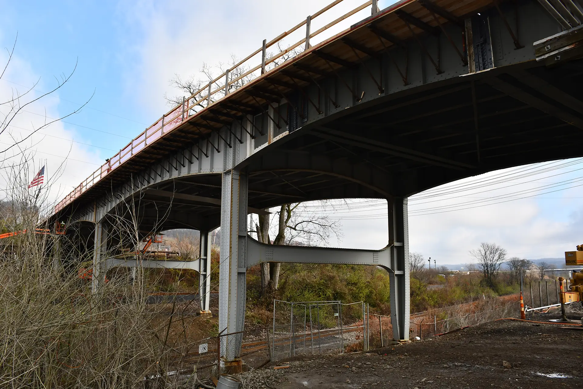 The scope of work encompassed the replacement of the original 400ft concrete roadway deck, barriers, and sidewalk, as well as abutment spall repairs. Other work included replacement of the expansion joints, bearings, scuppers, and miscellaneous steel repairs, electrical work, and painting. All work was performed above two active railroads, requiring heightened coordination and the rigorous safety measures for which Brayman is known.